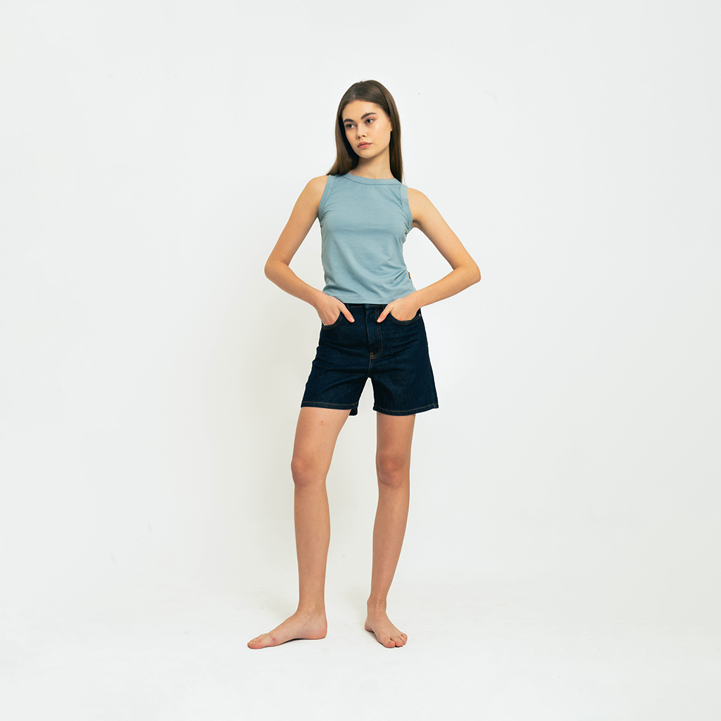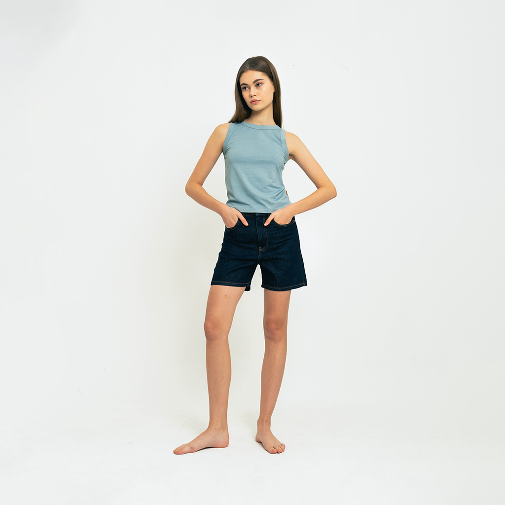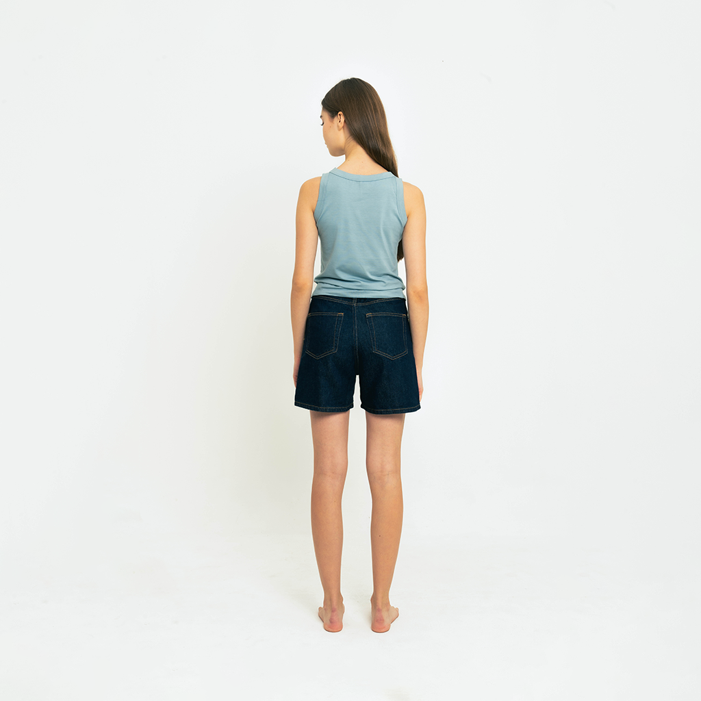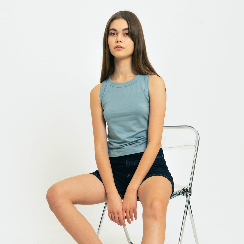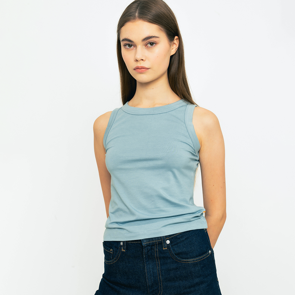 A waist-length racer tank top with wide ribbing along the neckline and back. Designed to be worn close to the body, this is MORI’s take on a classic wardrobe essential.