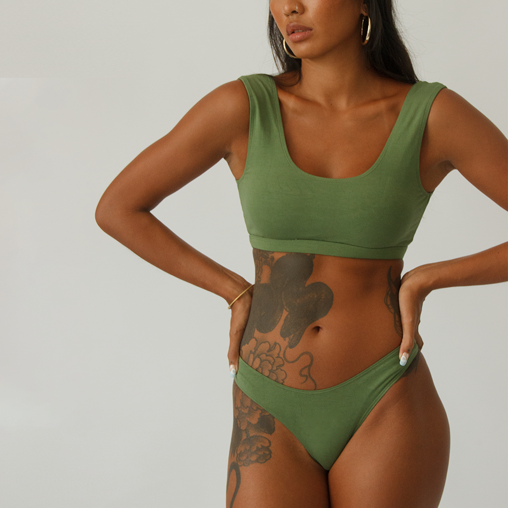 95% Bamboo Spandex, 5% Elastane — breathable, cooling, slow-made in Bali. YOMOGI is part of our plant-dyed collection, coloured using natural botanical dyes.